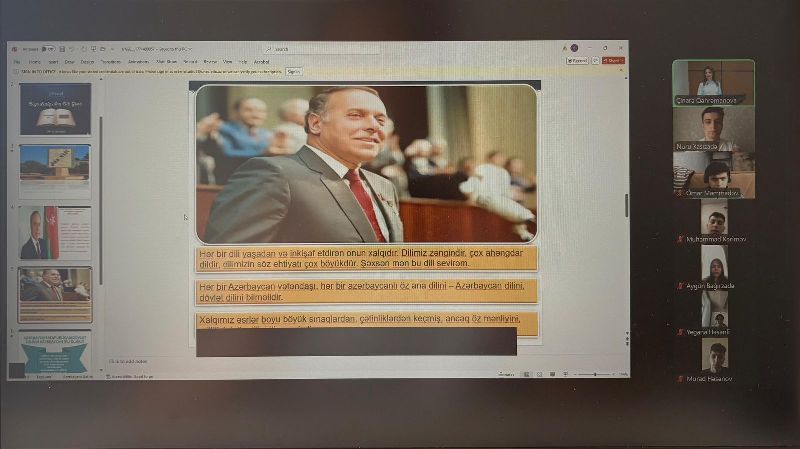 Çıxışlarda vurğulanıb ki, ana dili hər bir xalqın milli sərvəti, varlığının və kimliyinin əsas göstəricisidir. Ümummilli lider Heydər Əliyevin dil siyasəti nəticəsində Azərbaycan dili dövlət dili kimi möhkəmlənmiş, qorunmuş və inkişaf etdirilmişdir. Azərbaycan Respublikasının Prezidenti cənab İlham Əliyevin də qeyd etdiyi kimi, ana dilinin saflığının qorunması hər bir vətəndaşın vəzifəsidir.