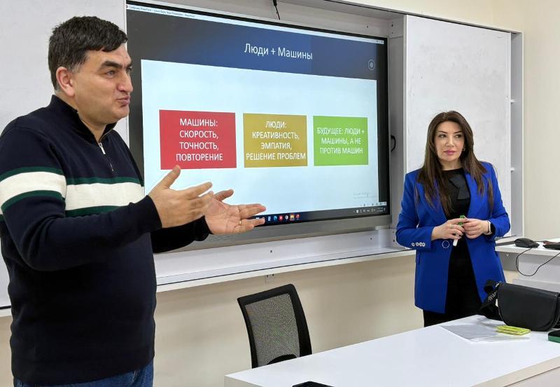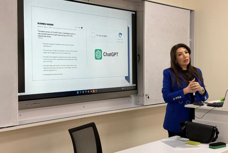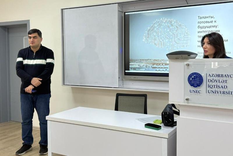 UNEC Rus İqtisad Məktəbində (RİM) “Rəqəmsal texnologiyalar və tətbiqi informatika” kafedrasının müəllimi Lamiyə Tahirovanın təqdimatında “Süni intellektin ləğv edəcəyi və yaradacağı yeni peşələr” mövzusunda açıq dərs keçirilib.