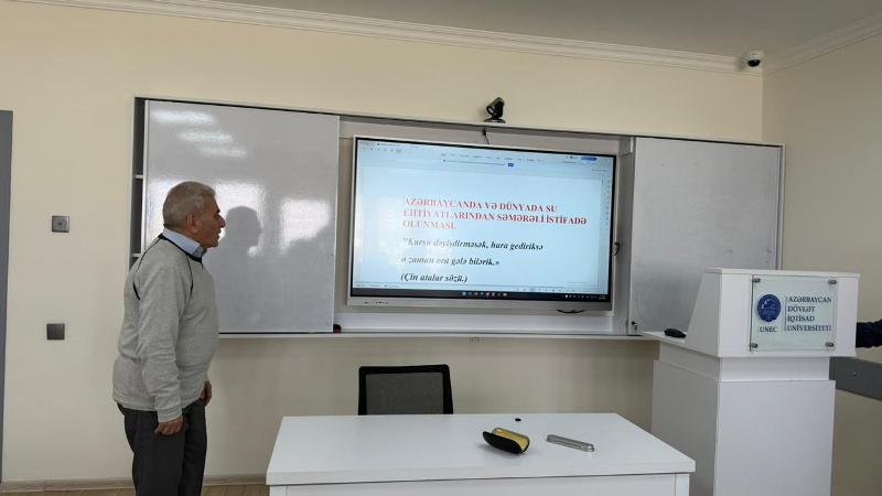 UNEC-in İqtisadiyyat və idarəetmə fakültəsində “Ekosistemin qorunması və su ehtiyatlarından davamlı istifadənin təmin edilməsi” mövzusunda maarifləndirici tədbir keçirilib.