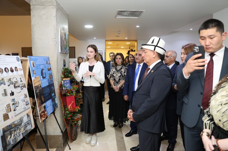 Сначала участники ознакомились с богатой выставкой работ студентов-дизайнеров. На выставке были представлены социальные проекты для пожилых людей и лицам с инвалидностью, работы в области графического дизайна, ребрендинг и образцы одежды, проекты по охране окружающей среды, а также социально ориентированные проекты, направленные на восстановление Карабаха. Особый интерес вызвали модель дома престарелых, инклюзивный дом, инновационная библиотека и другие проекты, разработанные студентами для восстановления Карабаха.